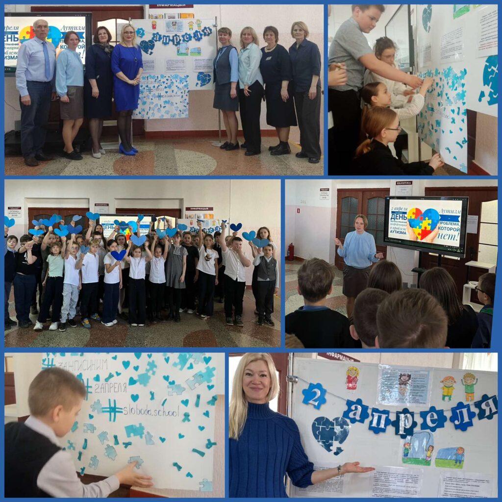 Учителя-дефектологи Елена Викторовна Шмарловская и Алла Владимировна Чернобай организовали интерактив для учащихся начальной школы: тематический стенд, на котором руками учащихся был создан коллаж в знак уважения к людям, страдающим данным расстройством, а также коллективный просмотр коротких мультфильмов («Аутизм может делать удивительные вещи», «Про Диму», «Мой братик с Луны») с последующим обсуждением. Трогательно звучали вопросы учащихся о помощи детям с данным диагнозом, что показывает, какие добрые сердца у наших детей, и как важно распространять информацию о людях с ограниченными возможностями, формировать толерантное отношение к ним.